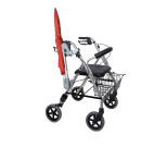 Aurinko- ja sateenvarjoteline varjolla rollaattoriin, pyörätuoliin tai rattaisiin.