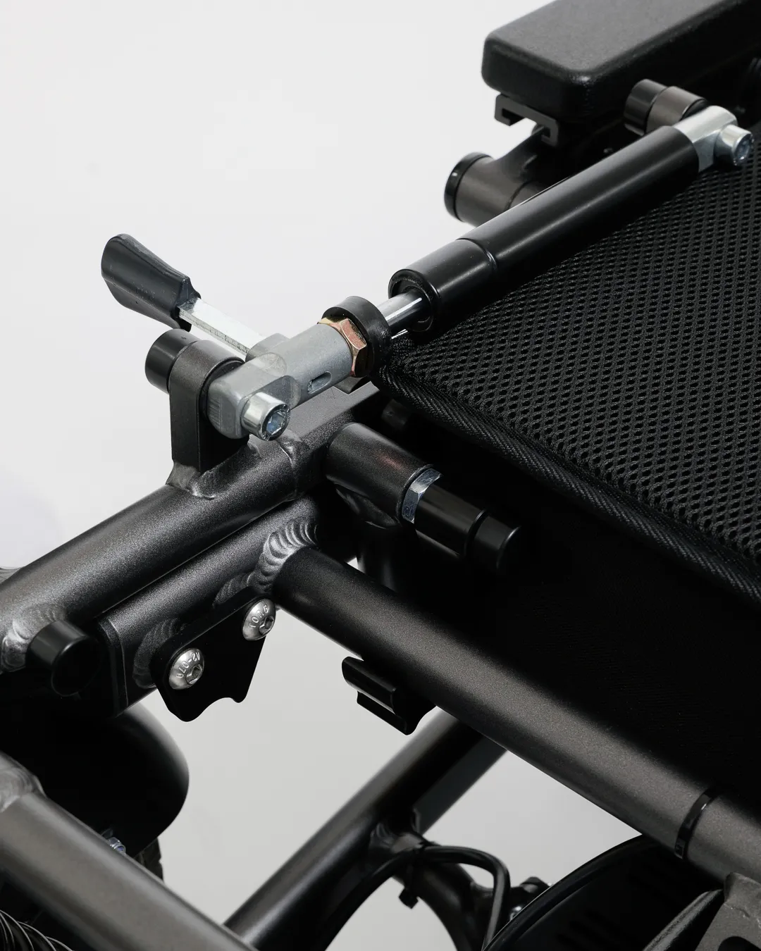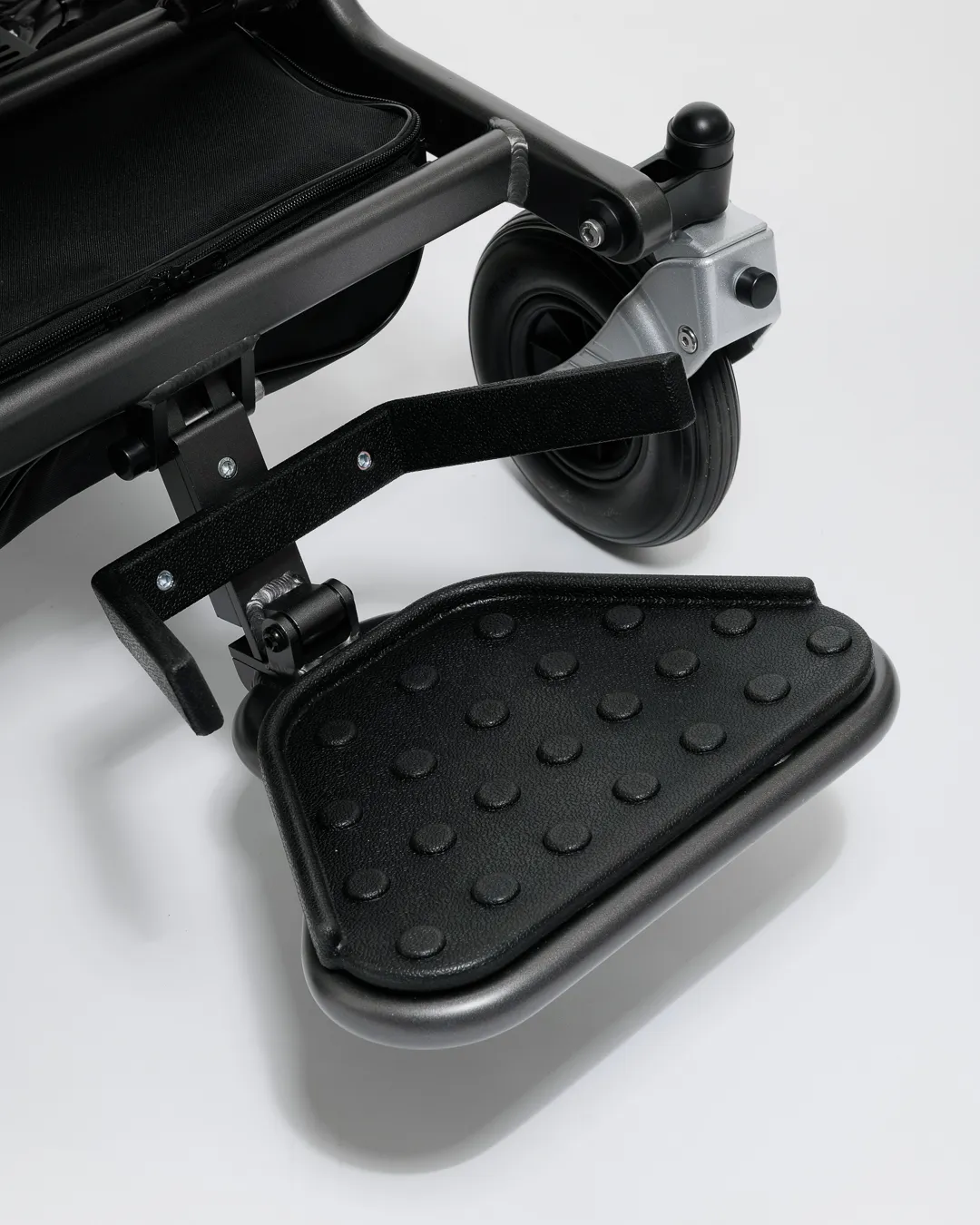 Kun se on taitettuna, käytännöllinen turvalukko pitää pyörätuolin lukittuna taitetussa asennossa, mikä tekee kuljetuksesta ja säilytyksestä helppoa.
