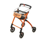 Rollaattorin kevyt alumiinirunko on käytännöllinen sisätiloissa ja kokoontaitettuna rollaattori mahtuu pieneenkin tilaan säilytettäväksi.