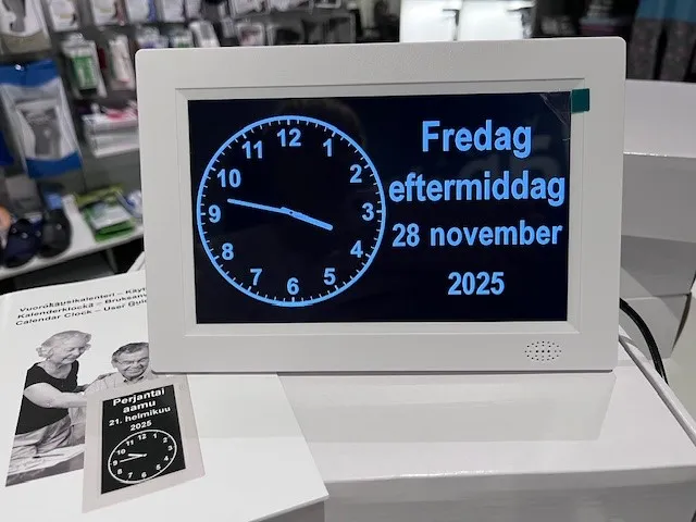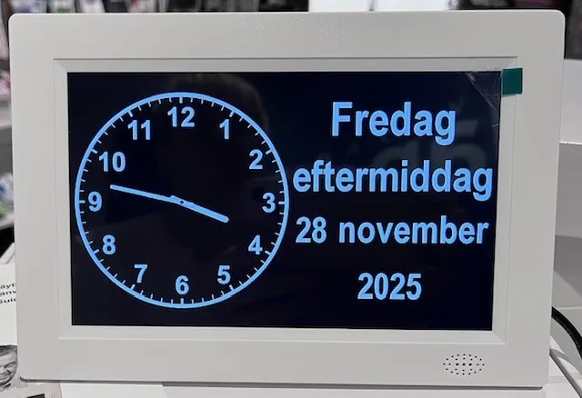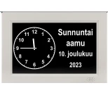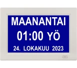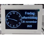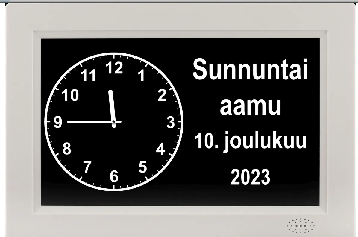 Vuorokausikello näyttää vuorokaudenajan selkeästi sanoina.