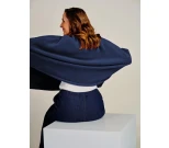 Viitta-tyylinen fleece, yhden pituuden malli ulottuu polveen asti.