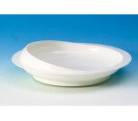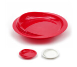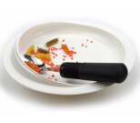 Toiselta puolelta kaarrettu reuna helpottaa ruoan saamista aterimeen yksikätisesti ruokaillessa.