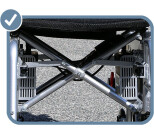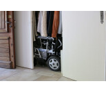 Pyörätuolin saa taitettua pieneen tilaan helposti ja nopeasti ilman työkaluja.