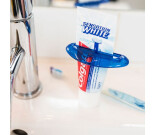 Tubens bottenkant träs igenom klämmans öppning. Dra klämman uppåt allt efter det att innehållet minskar.
